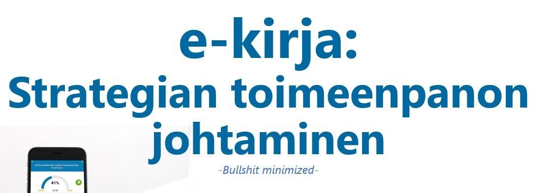 Tutustu huolella valmistelemaamme e-kirjaan, jossa pureudumme strategian toimeenpanon johtamisen haasteisiin ja prosessiin. Aineistona kirjaan ovat toimineet sadat keskustelut, joita olemme käyneet asiakkaidemme ja yhteistyökumppaniemme kanssa.