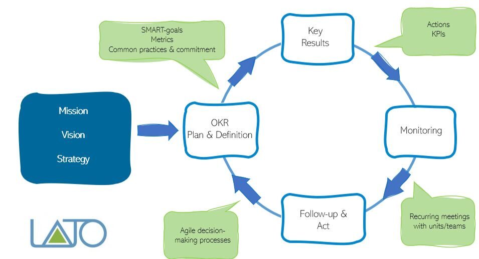 OKR on nykypäivänä suosittu tavoitejohtamisen jatkojalostettu malli, jolla strategia ja strategiset tavoitteet tuodaan osaksi työntekijöiden arkea ja päivittäistä tekemistä. OKR-tavoitteiden etenemää voidaan mitata suoraan tekemisellä, ja sillä on merkittävät hyödyt henkilön ja sitä kautta koko organisaation suorituskykyyn. Organisaation ylätason strategia saattaa näyttäytyä melko abstraktina alemmille tasoille, ja OKR-mallin avulla ylätason tavoitteet saadaan jalkautettua ja linkitettyä kaikille tahoille asti. OKR-tavoitteet tukevat myös jatkuvaa kehitystä sekä yksilön että organisaation näkökulmasta, ja malli toimii strategian viestintätyökaluna.