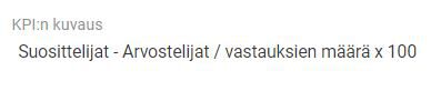 Eli kaikissa yksinkertaisuudessaan: suosittelijat – arvostelijat / vastaajien määrä X 100.
