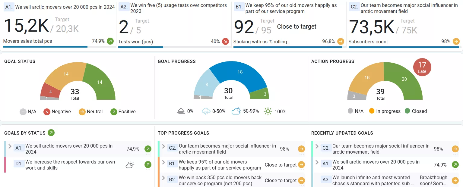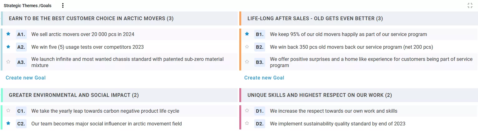 strategy, goals, OKRs, projects, risks, ESG, KPIs and/or action plans.